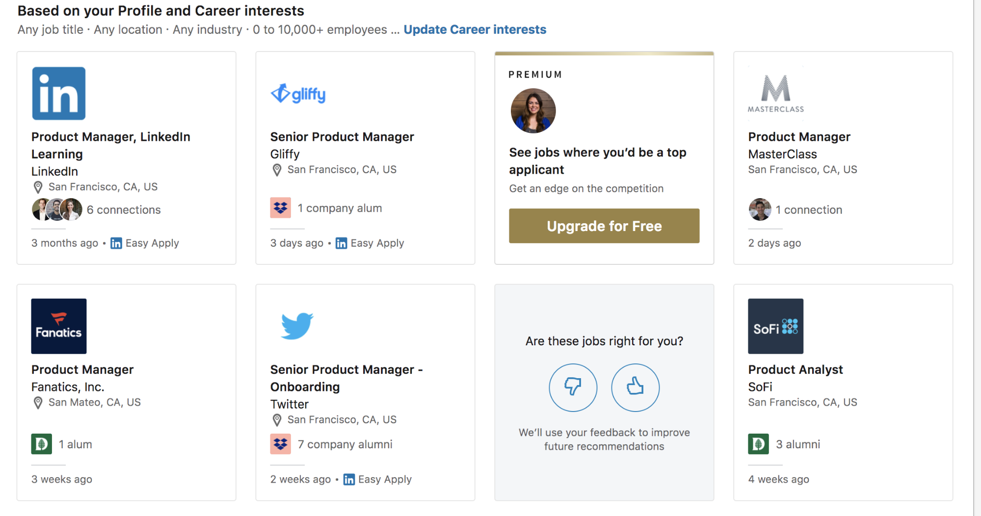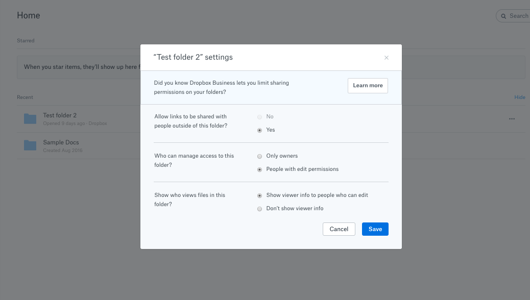 Now that you have your “always on” banners in place, let’s get more targeted. An effective way to upsell users is to educate them on the improved functionality they will get for a feature they are already using. For example, a user viewing the LinkedIn “Jobs” page is told they could be receiving more targeted content. A user setting folder permissions on Dropbox is educated about the additional permissions available on the Business plan.