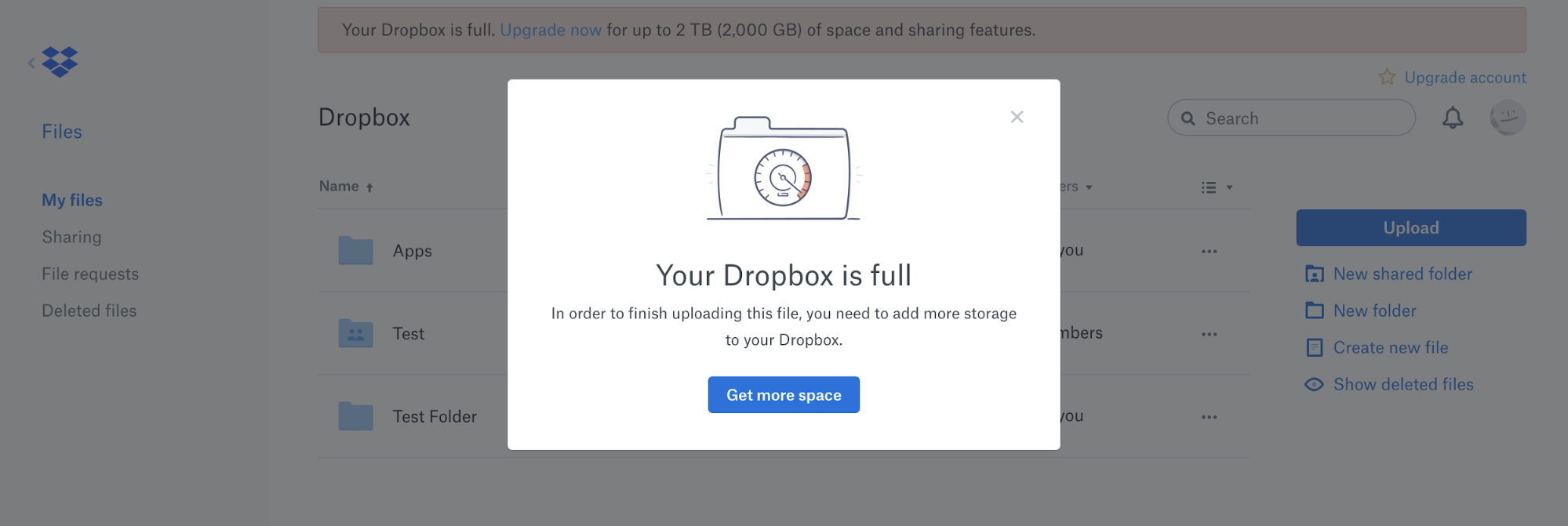 Ideally, the ads should be based on segmentation so that they speak to the user’s specific needs and thus lead to higher engagement. For example, Dropbox surfaces a prominent banner at the top of its web app once a user has used up their available space quota. This banner remains until the user either upgrades or removes content from their Dropbox account.