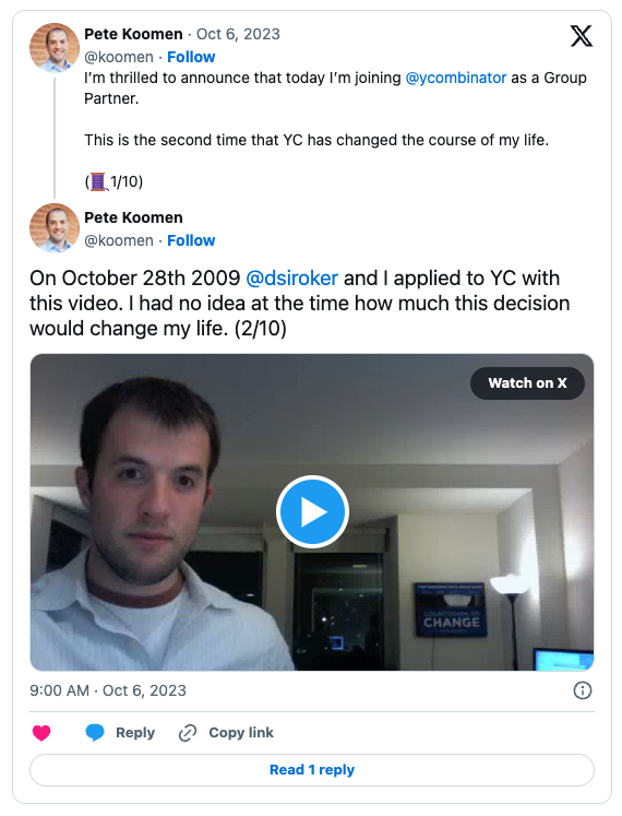 Pete first came back to YC last year as a Visiting Group Partner — a similar role, but one that asks for a commitment on a batch-to-batch basis. As with Pete, a number of Visiting Group Partners have gone on to join YC as full-time Group Partners.